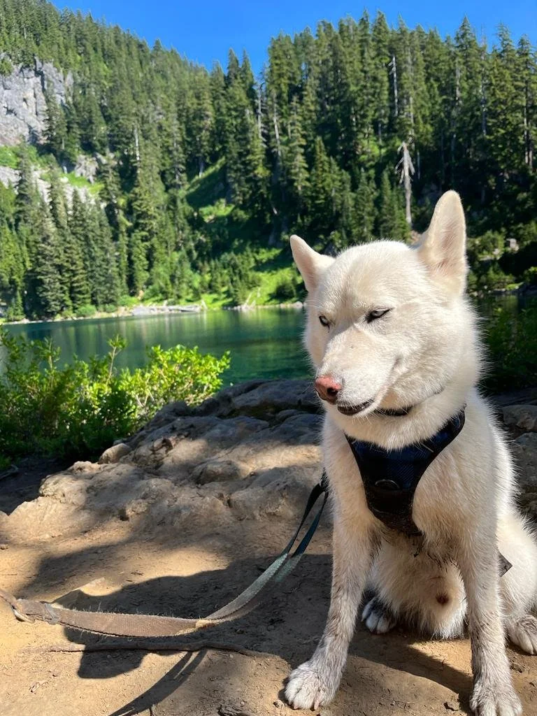 Ash later on traveled to Seattle where he found his forever family. It was all thanks to our awesome Chanchal who took over his care and fostered him after she found him the best mom ever and brother Nico. Ash now lives the dream life and does all his favorite activities such as hiking.